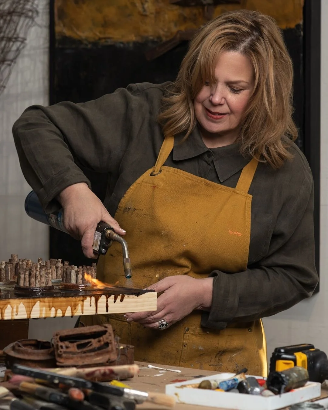 Guided by curiosity, Sharon’s process is an ongoing exploration of how disparate materials interact—pairing the discarded with the modern, much like bringing together people of varied histories and backgrounds to create a richer, more diverse conversation within her work.